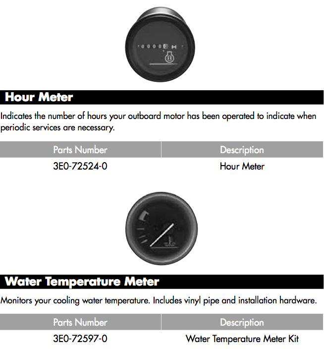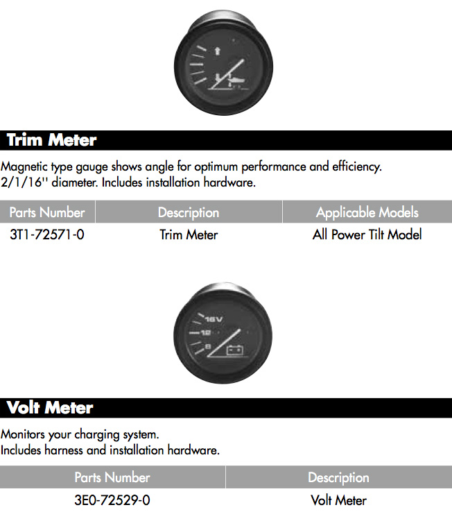 • Tilt/Trim Gauge (optional harness needed for MFS/TLDI models, part # 3KY725730M)